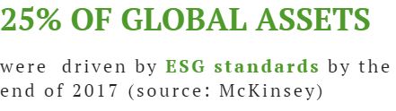 Together with recent growing awareness of the need for sustainability, ESG investing (environmental, social, and governance) is reshaping the way financial institutions are thinking about their portfolios. Among other impressive numbers, McKinsey estimates than 25% of global assets totaling USD 88 trillion were actually driven by ESG standards by the end of 2017.